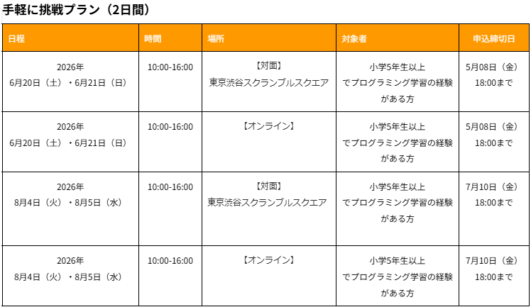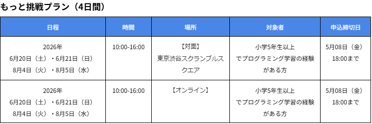 子ども向けプログラミング教育事業を行う株式会社CA Tech Kids(読み:シーエーテックキッズ、本社:東京都渋谷区、代表取締役社長:上野朝大)は、「最短2日で検定に挑戦!テキストプログラミング入門講座」を、2026年6月・8月に開催することをお知らせいたします。