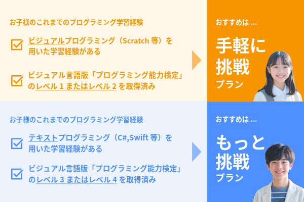 本講座では、お子さまの学習経験やスケジュールに合わせて選べるよう、以下2つのプランをご用意しています。