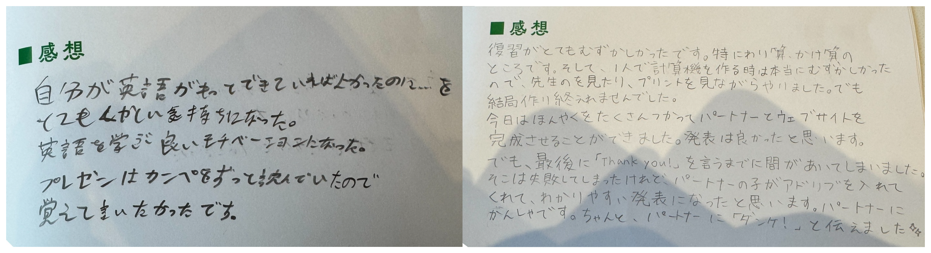「緊張したけど、英語が通じてうれしかった。相方が優しくて安心した! LINEも交換して仲良くなれた!」という、交流を楽しんだ様子が伝わるメッセージもありました。また、3日目の見学を振り返って「自分と同い年の車を見つけた! 黄緑色でかわいかった♡」という微笑ましいコメントもあり、どれもその瞬間の気持ちがいきいきと書かれていました。それぞれが自分の言葉で旅を振り返り、しっかり成長の手応えを感じているのが伝わってきました。