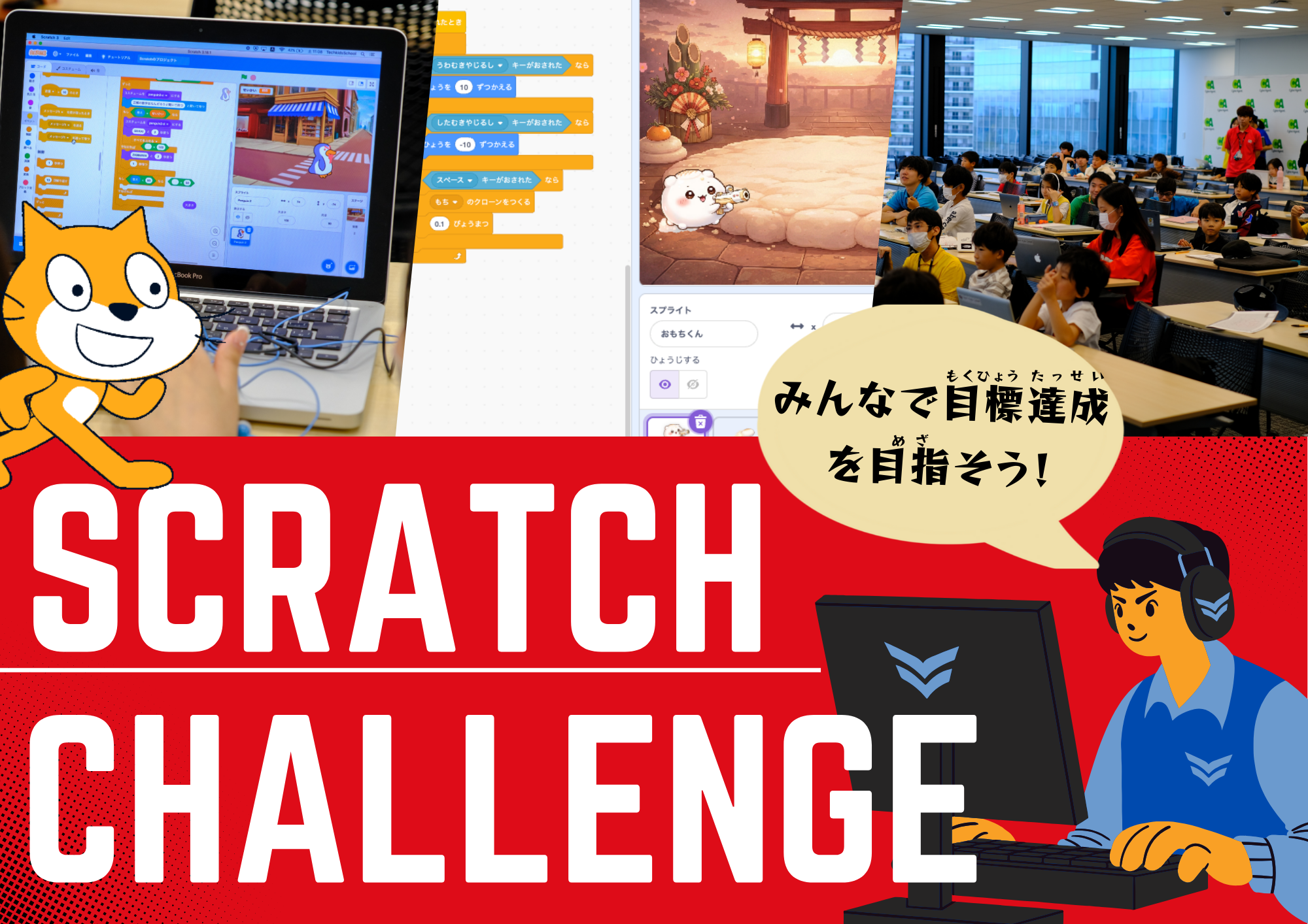 Tech Kids Schoolの1月1週目のトレーニングタイムでは、Tech Kids School 渋谷校・オンライン校の全ステージの生徒のみなさんを対象に、「Scratch実装Challenge」という企画を実施しました!
